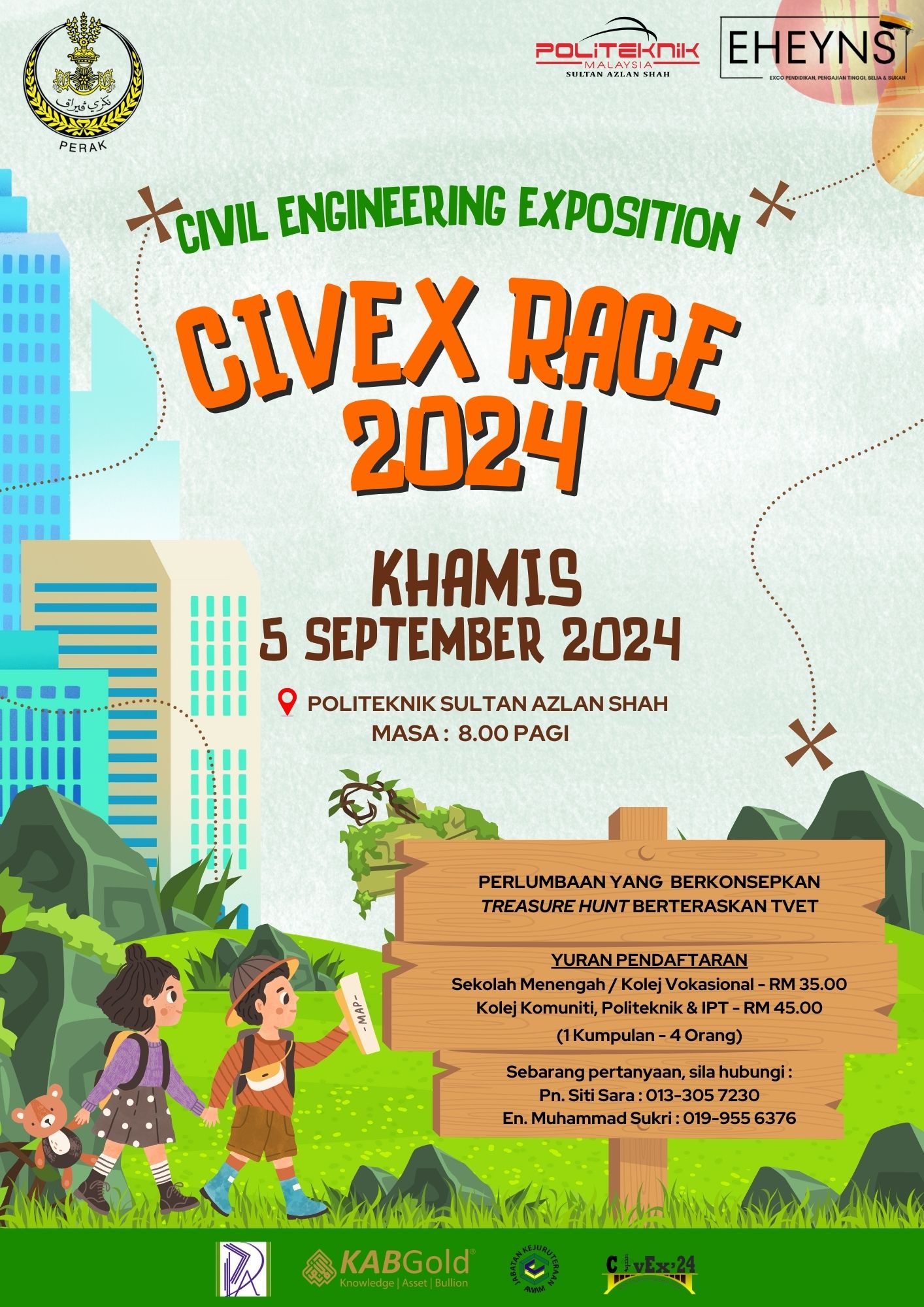 Pelaksanaan program Civil Engineering Expo 2024 (CivEx’24) anjuran Politeknik Sultan Azlan Shah (PSAS) bersama Jawatankuasa Pendidikan, Pengajian Tinggi, Belia Dan Sukan Negeri Perak.