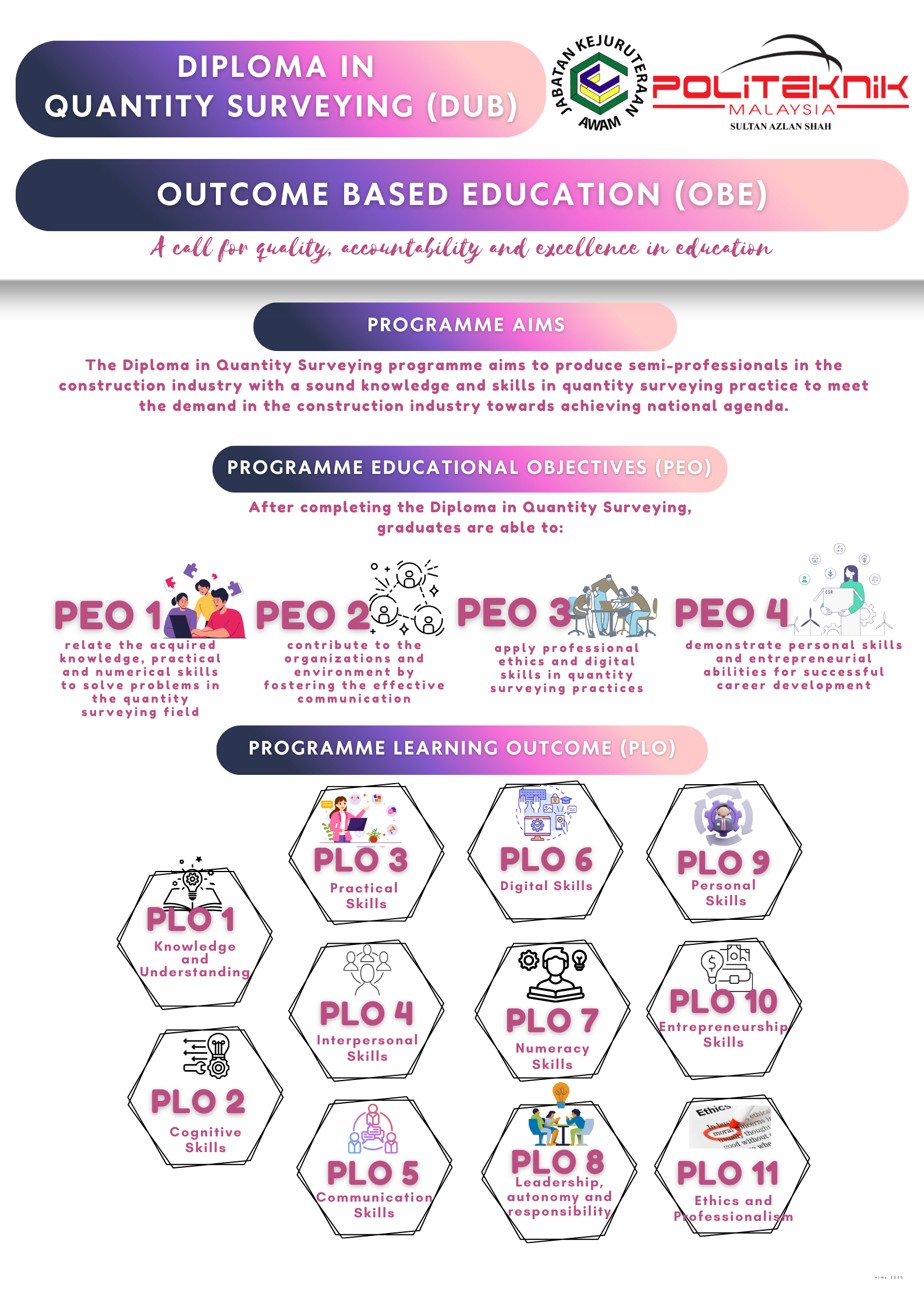 The Diploma in Quantity Surveying programme shall produce balance TVET graduates who are: